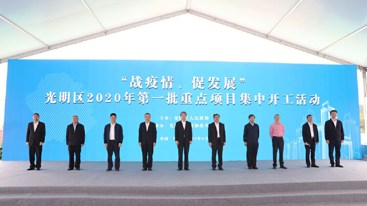 3月11日上午,在南方智能制造基地项目现场,机械设备汽笛声轰鸣,吹响了光明区“战疫情、促发展”的号角。光明区在此集中开工2020年第一批23个重点项目,总投资达104亿元。此次集中开工项目涵盖科技创新、产业发展、基础教育、市政工程、生态环境等重点领域,将为光明区加快建设世界一流科学城和深圳北部中心提供强力支撑,为光明实现高质量发展奠定坚实基础。