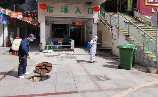 据了解,行动当天上午,根据深圳市城市管理和综合执法局全市紧急视频会议关于开展全市农贸市场环境卫生专项整治和执法检查工作的相关要求,马田街道迅速组织了农贸市场全区域环境卫生整治行动。街道执法队联合市政中心、各相关社区,通过专项行动,彻底消除辖区7家农贸市场的卫生死角,重点解决垃圾暴露、污水乱排、杂物乱堆等环境“脏乱差”问题,并保持“一日一清洁消毒、一周一大扫除”。截止目前,该街道出动消杀应急人员28人次,使用“四害”消杀药物118公斤,高氯消毒液18.1公斤,清理卫生死角4处,处理“四害”孳生地10处,消杀面积达20.2万平方米。与此同时,执法队及时对市场周边环境卫生进行督查,共出动91人次,车辆31台次,累计检查禽肉、水产品销售档口76家,确保农贸市场全天候保持营业场所及周边环境干净整洁。
